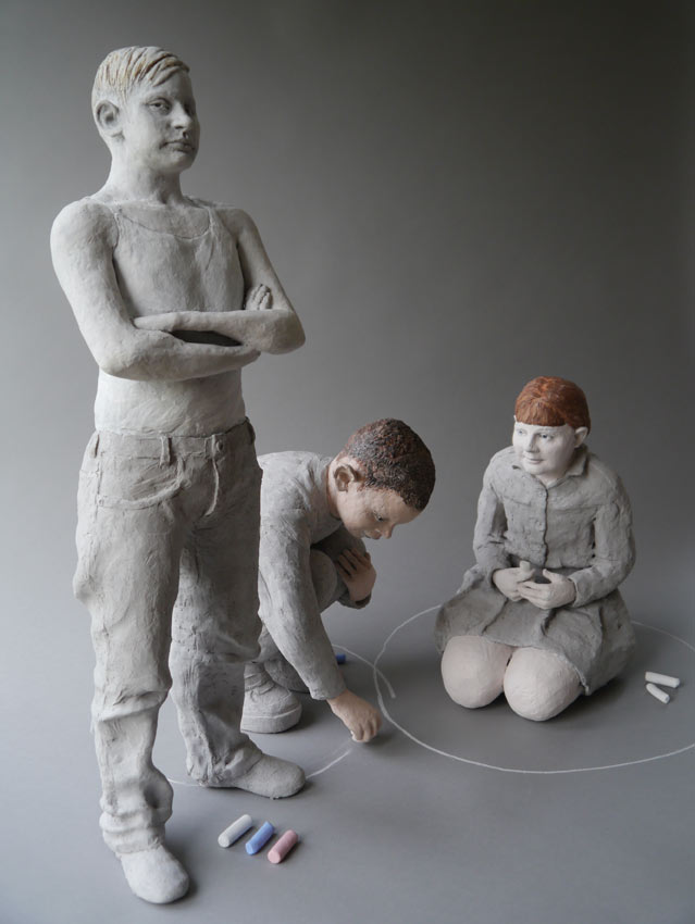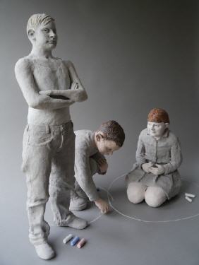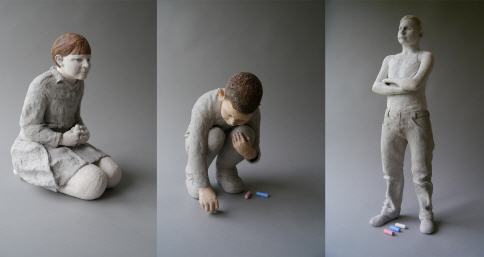 Stephanie Marie Roos, 2014, Kneeling girl 9.4 x 11 x 15.3 in; Crouching boy 9 x 13.7 x 14.6 in; Standing boy 9 x 7 x 28 in (Kneeling girl: 24 x 28 x 39 cm, crouching boy: 23 x 35 37 cm, standing boy: 23 x 18 71 cm)