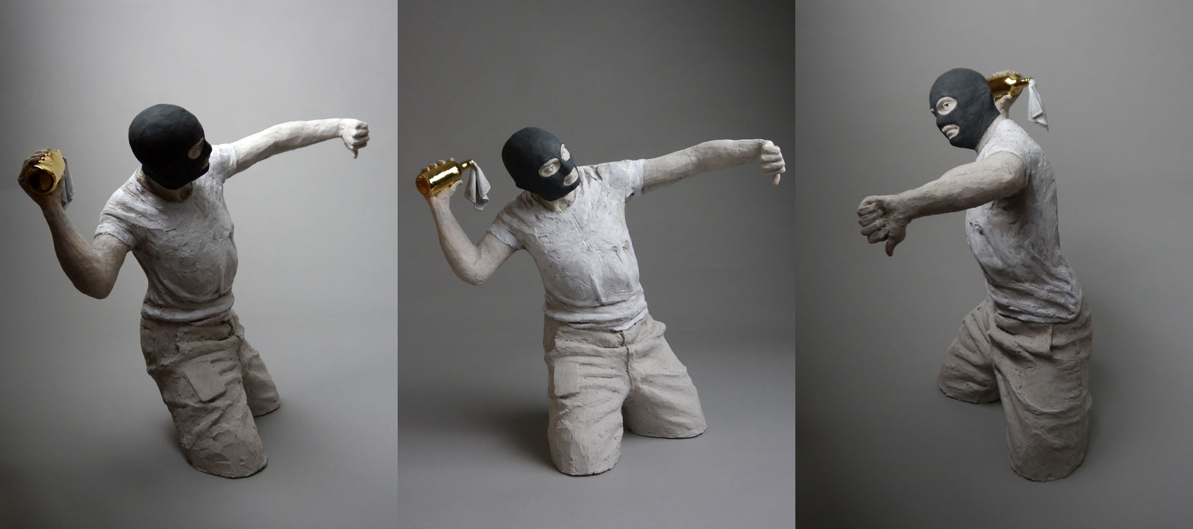 Stoneware, slip, underglaze color, glaze, bright gold overglaze