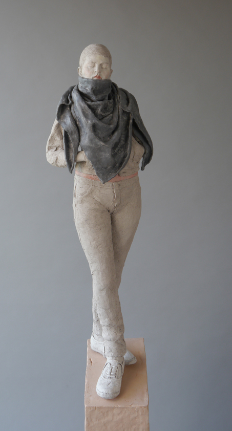 Stoneware, engobe, underglaze color, glaze, metal rods